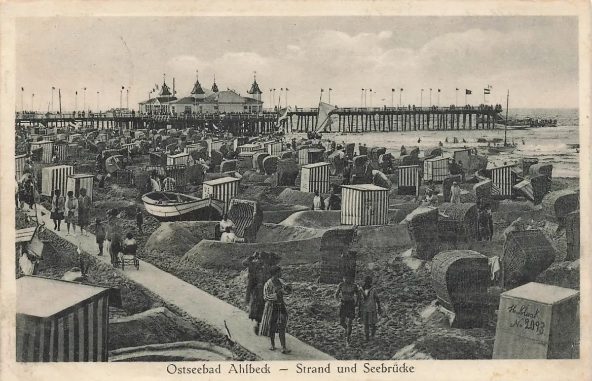 Strand und Seebrücke Ostseebad Ahlbeck Mecklenburg-Vorpommen Postkarte AK 1928