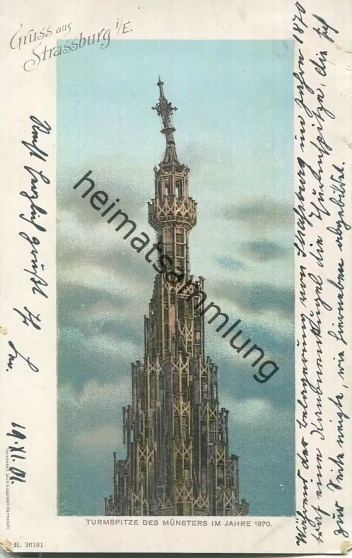 Strassburg - Münster - Turmspitze 1870 - Verlag Lautz & Isenbeck Darmstadt - Bahnpost (G13963) gel. 1901
