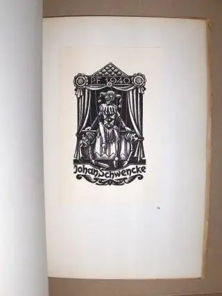 Erstauflage. 19 Original s/w. (1 zwei-Farb.) Exlibris (Holzschnitte, Holzstiche, Lithographien, Radierung u.a.), untersch. Format, montiert. auf Leichtkarton. Graphiken sind sauber. Kl.-4°, Or.-Ill.-Karton oder Pappbd. (Einband etwas randgebräunt, Ecken leicht bestossen). Gutes Exemplar aber insges