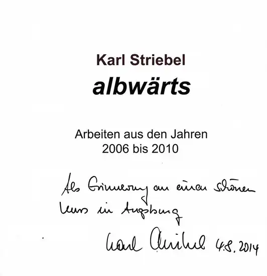 Striebel, Karl - Jutta Fischer (Text): albwärts - Arbeiten aus den Jahren 2006 - 2010. Widmungsexemplar.