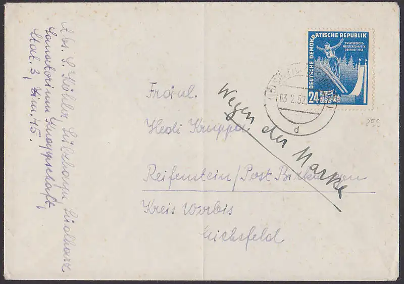 Sülzhagen (Südharz) 3. Winterspsortmeisterschaft Oberhof, 24 Pfg. (299), Bf gefaltet