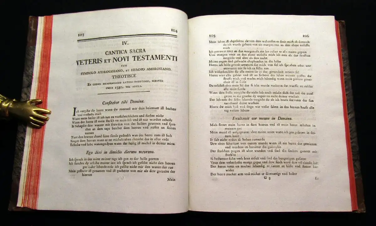 Einband berieben und bestoßen, Rs. mit Goldprägung, Rücken mit floraler Goldprägung, roter Rundumschnitt, alter Bibliotheksstempel auf Titel, Papier altersbedingt gebräunt. Seltenes Exemplar