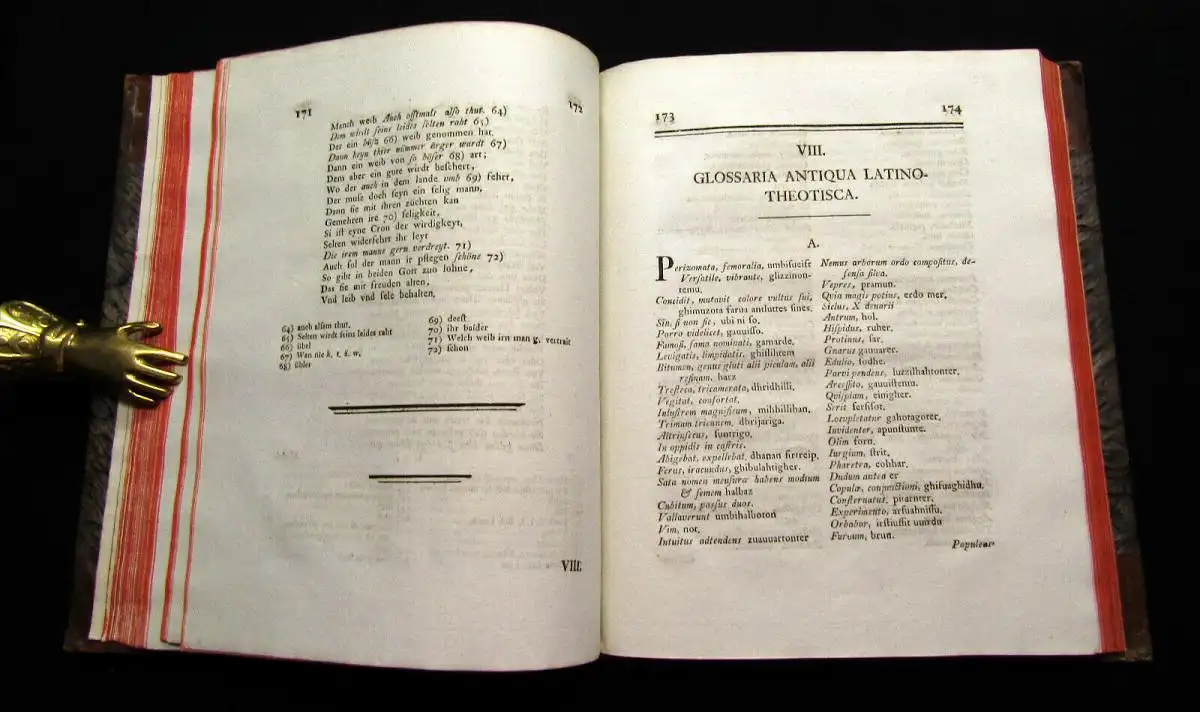 Die Sammlung enthält Erstdrucke Kopenhagener Handschriften wie der "Historia Laurini" (Goedeke I, 251), der "Historia Darifanti (Goedeke I, 134), ferner "Glossaria Antiqua Latino-Theotisca" (S. 173-411) u.a.