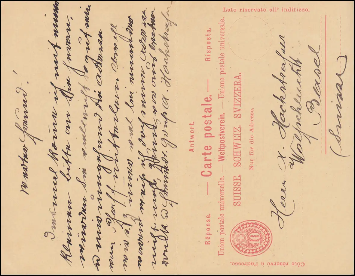 Suisse Carte postale P 21 chiffre dans la carte double ovale 10/10 C. BASEL 20.8.1907
