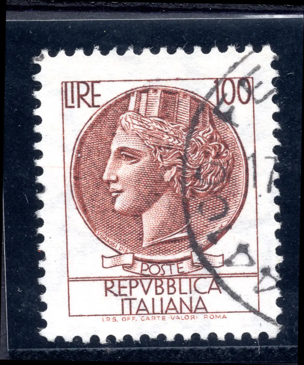 Gebraucht - Syrakus Lire 100 Nr. 1083a gedruckt auf nicht fluoreszierendem Papier mit filigranen Sternen II - sehr gute Qualität und Zentrierung - Selten - Kat. 125 Code 574/11