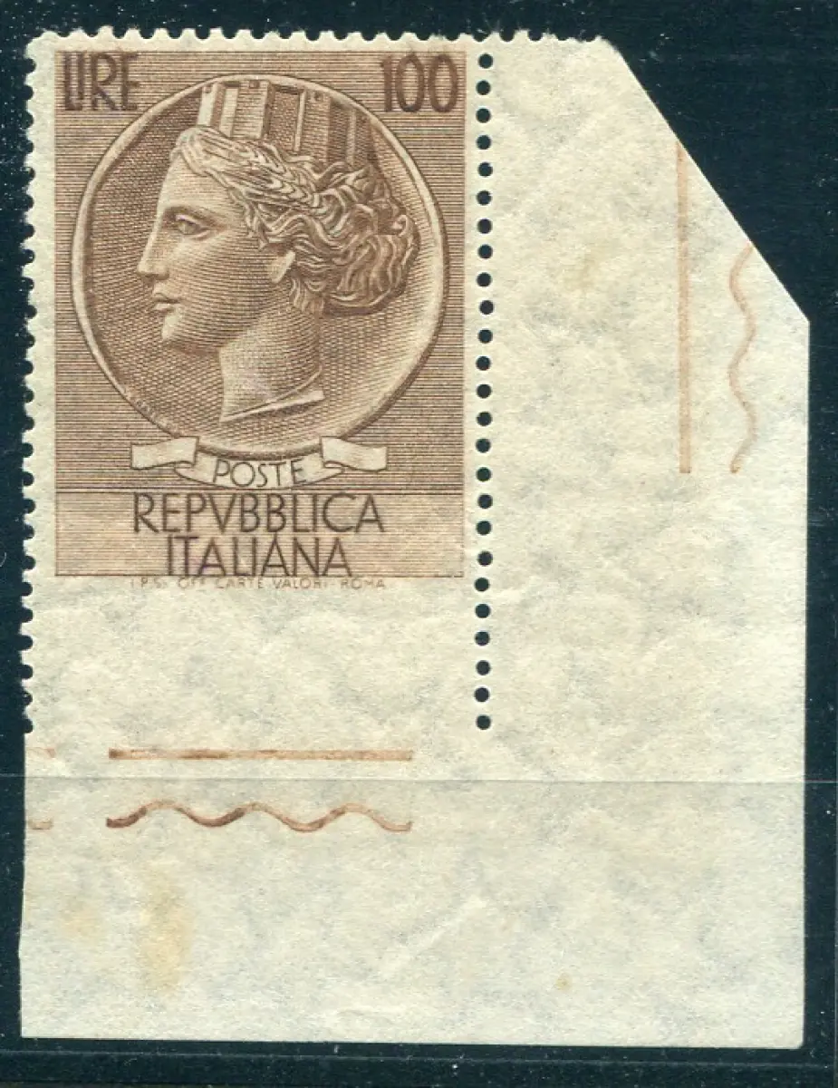 Syracusana Lire 100 Sorten ungezähnt unten Vollgummi - Syracusana Lire 100 Nr. 785/Ic ungezähnt unten a. von f. - Ungewöhnlich auch wegen hervorragender Zentrierung - Kat. euro 600 Code 552/11