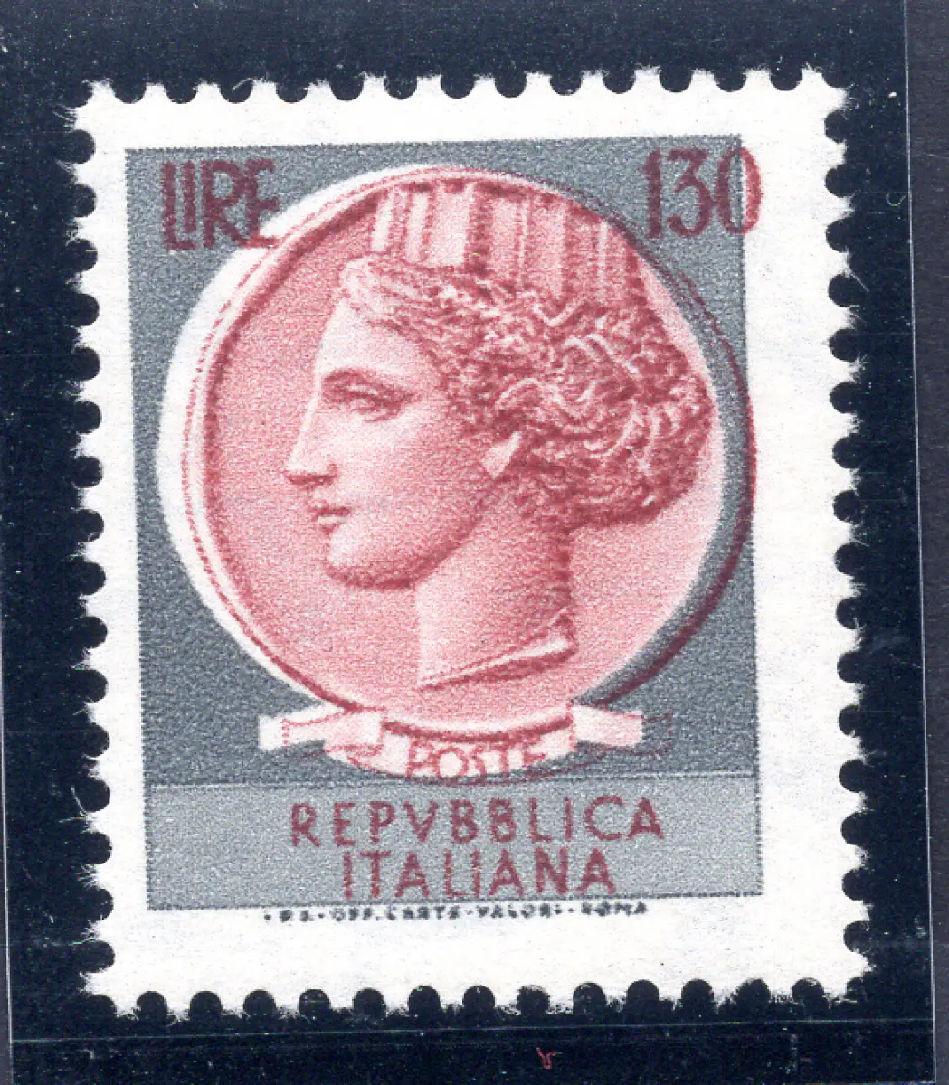 Syrakus Lire 130 verschobene Farbsorten Vollgummi - Syrakus Lire 130 Nr. 1082 schönes Exemplar mit nach rechts verschobenen Farben (Sass. spec. n. 689Aa) - Ungewöhnlich - Kat. euro 150 n. 817/5