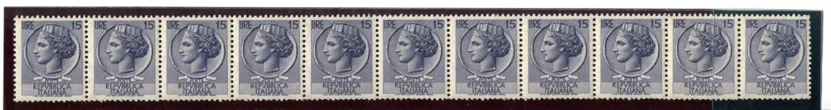 MNH Vollgummi - Syrakus Lire 15 Sterne II liegend Nr. BS767/I horizontaler Streifen von 11 Exemplaren von ausgezeichneter Qualität und Zentrierung - Selten - Kat. euro 900 Cod. 482/16