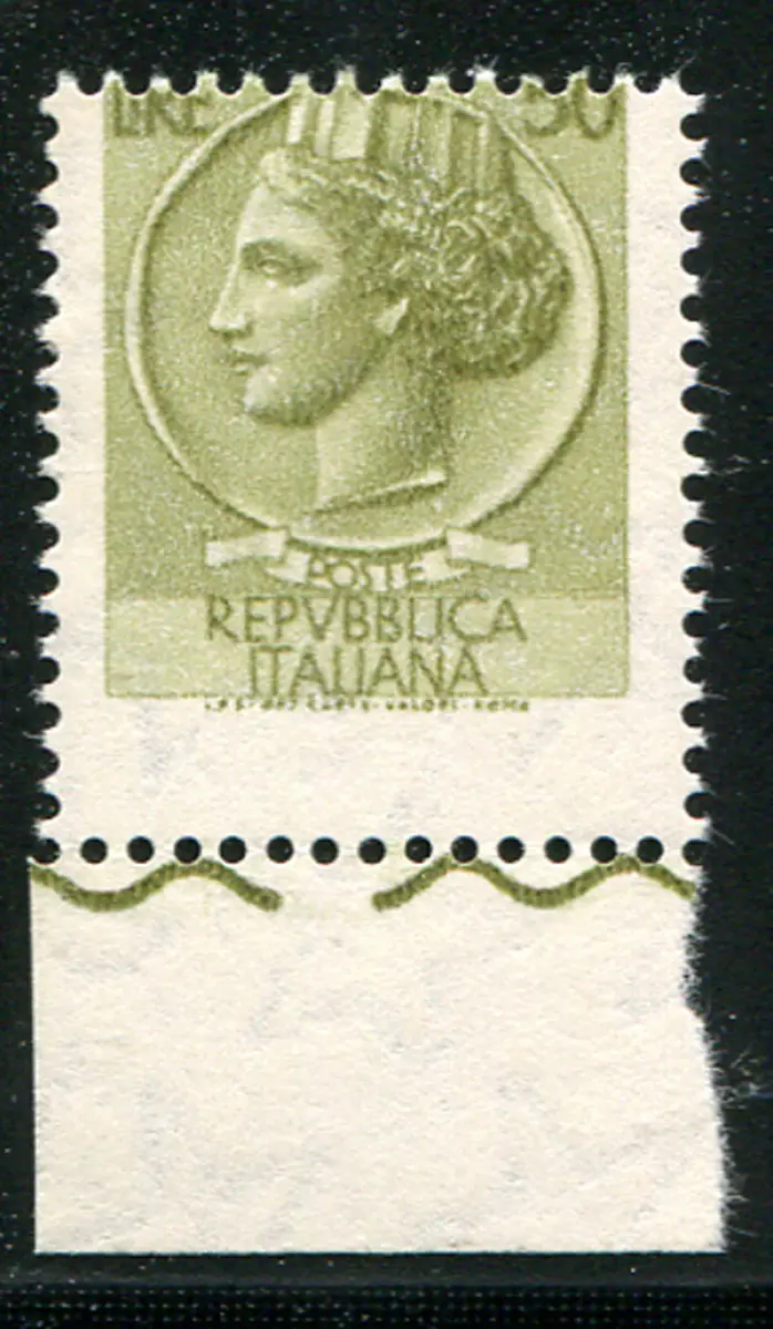 Syracusana Lire 50 (Vinica) verschobene Verzahnung Vollgummi - Syracusana Lire 50 (Vinylkautschuk) Nr. 1076l stark verschobene horizontale Verzahnung b. von f. unten (letzte Reihe der Folie) - Ungewöhnlich Cod. 737/13