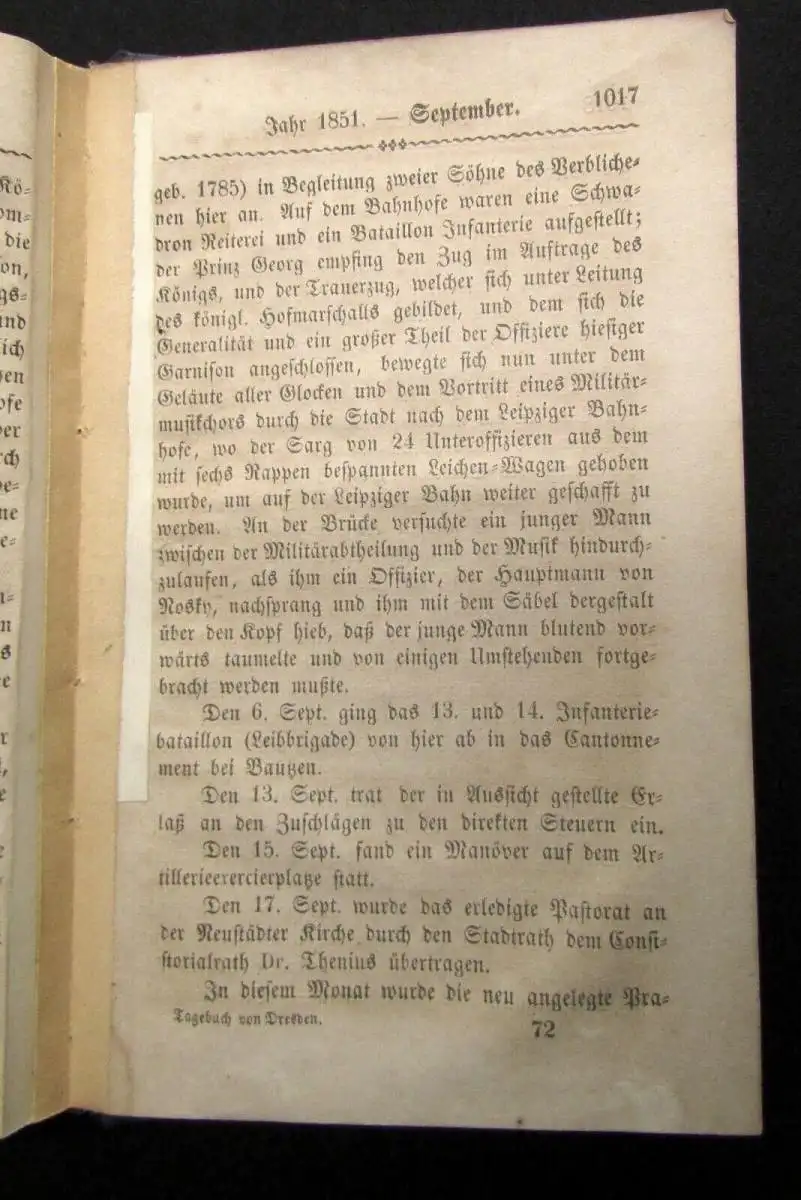 Tagebuch eines Dresdner Bürgers; oder Niederschreibung der Ereignisse eines jeden Tages, soweit solche vom Jahre 1806 bis 1851 für Dresden und dessen Bewohner von geschichtlichem, gewerblichem oder örtlichem Interesse waren