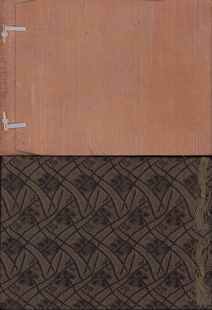 [Kobe, T. Takagi Photographic Studio and Art Gallery, 1916, Je 1 farbig illustr. Titel u. 20 kolorierte Fototafeln (Lichtdruck) mit englischen Erläuterungen u. Seidenpapier-Schutzblättern. 18,5 x 25,5 cm. Gefütterter Brockateinband mit stilisiertem Blumenmuster u. seidenen Schmucktroddeln vorn, im mit Japanpapier gefütterten offenen Papp-Schutzschuber mit Beinschließen.
