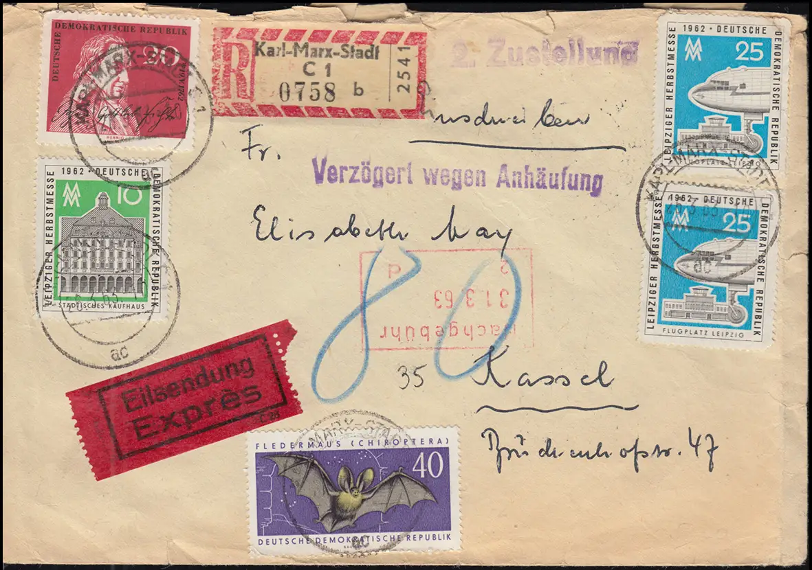 Tampon retardé pour accumulation DDR Eil-et R-Lettre KARL-MARX-STADT 26.3.1963