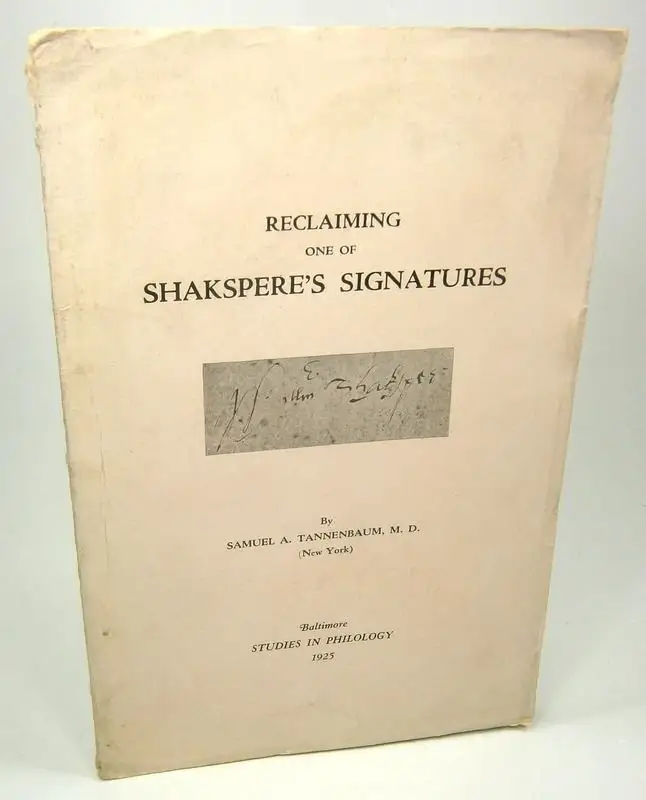 Tannenbaum, Samuel A: Reclaiming one of Shakespeare's Signatures. (Vom Autor signiert).