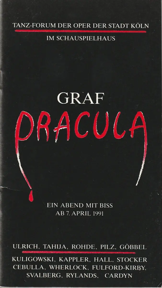 Tanz-Forum der Oper der Stadt Köln im Schauspielhaus, Michael Hampe, Jochen Ulrich: Programmheft GRAF DRACULA - Ein Abend mit Biss Premiere 7. April 1991.
