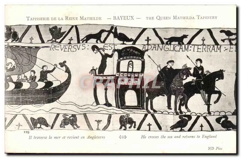 Tapissserie de la reine Mathilde Bayeux Cartes postales Il traverse la mer et revient en Angleterre