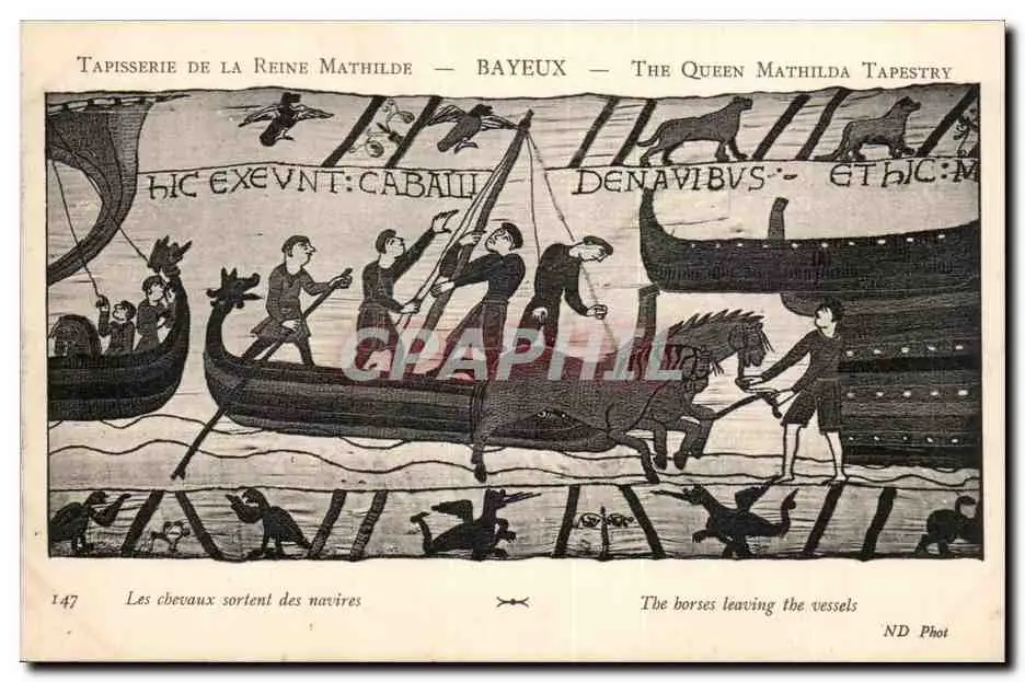 Tapissserie de la reine Mathilde Bayeux Cartes postales Les chevaux sortent des navires