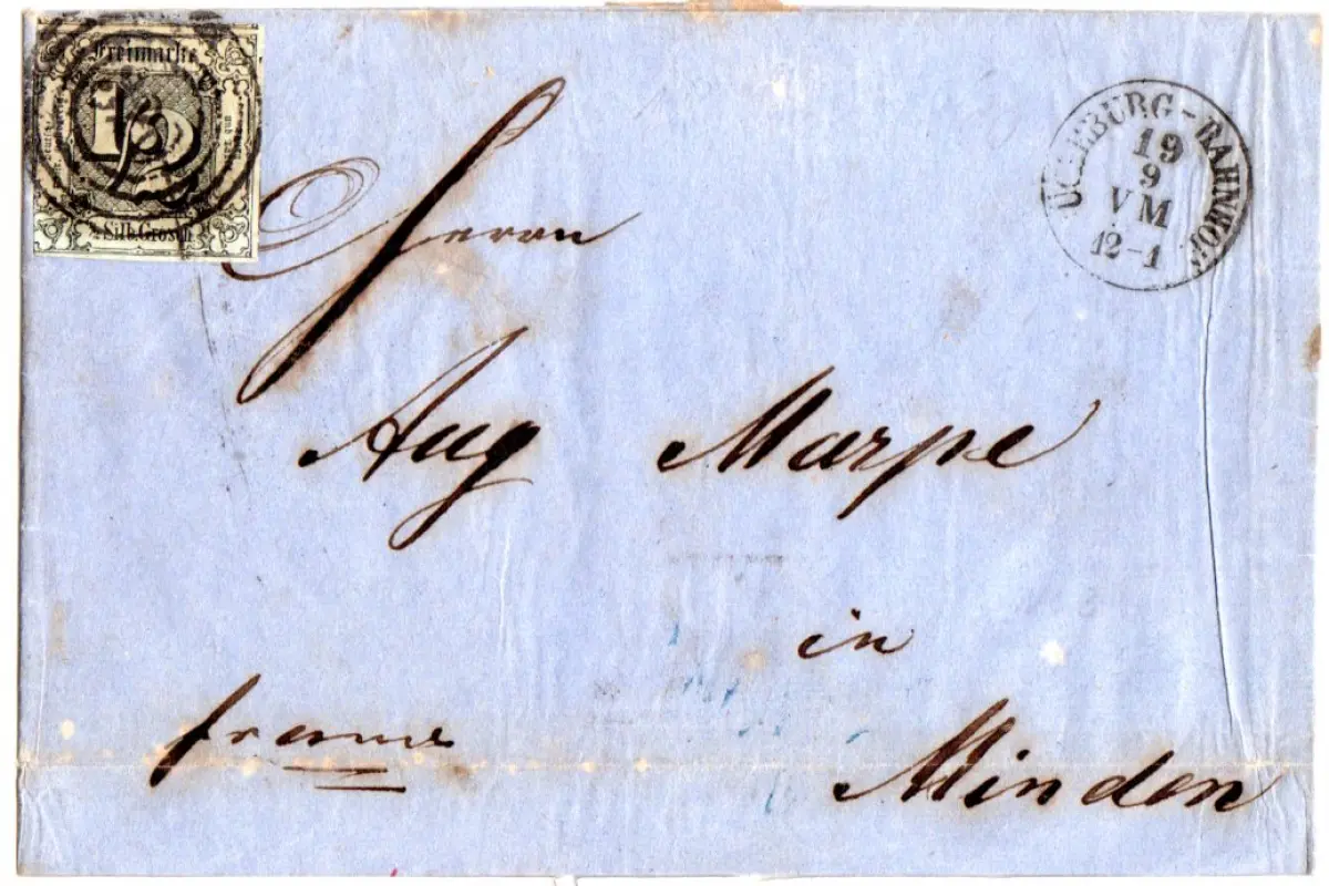 Taxis 1860, 3-seitig breitrandige 1/2 SGr. auf Brief m. Nr.Stpl. 320 Bückeburg