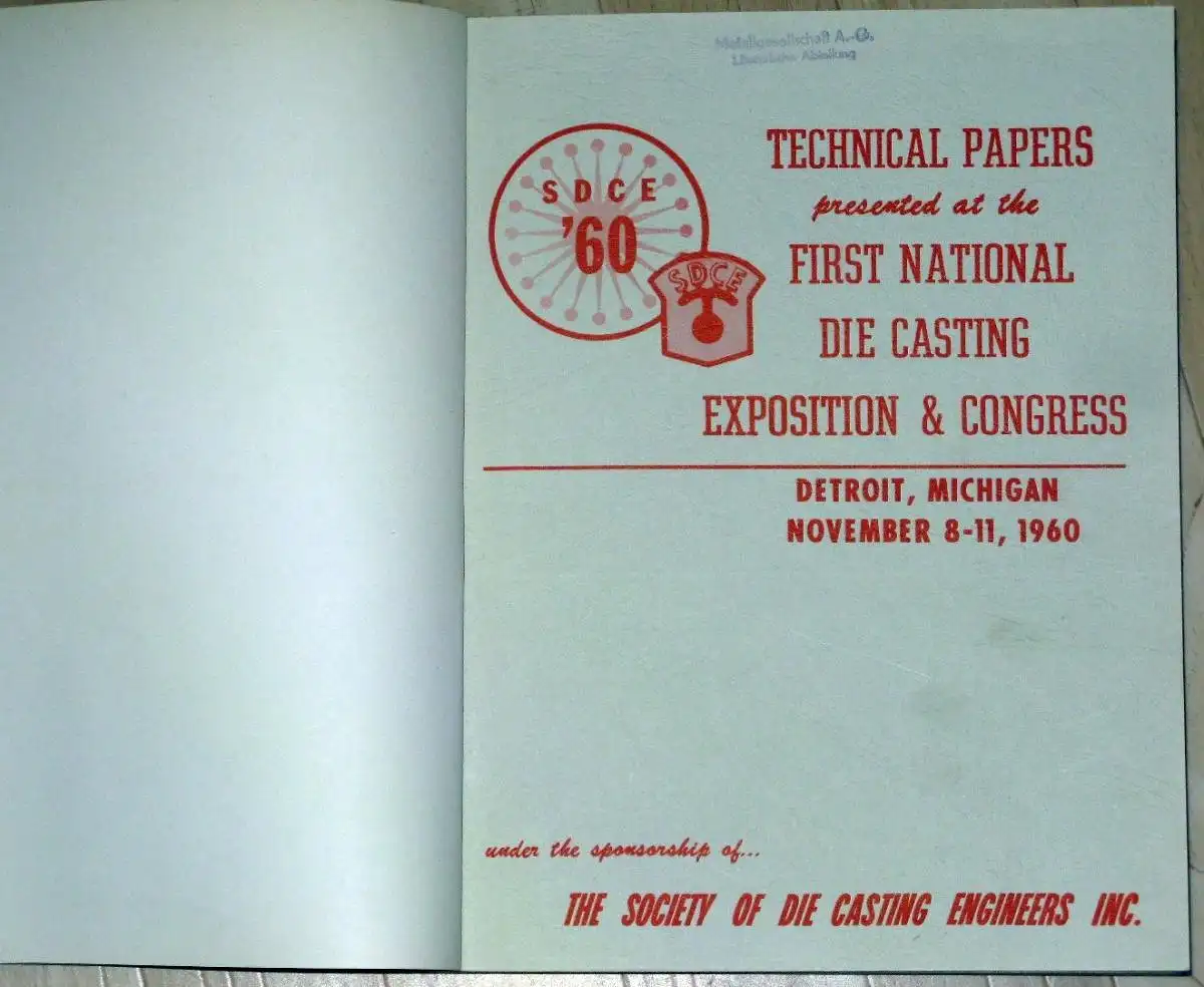 Technical Papers, presented at the First National Die Casting Exposition & Congress Detroit, Michigan, November ... 1960.