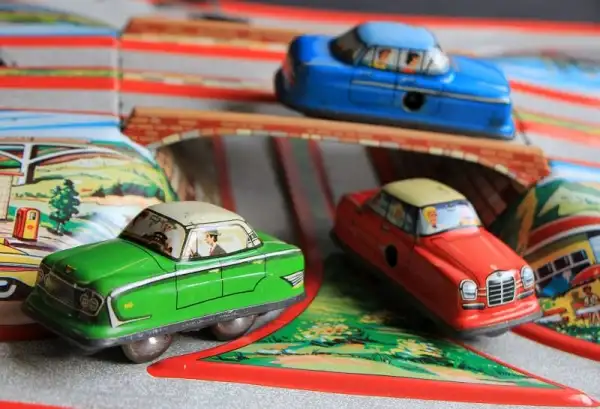 Serien-Nr.: 298Technofix Blechbahn mit 3 Fahrzeugen: Opel, Mercedes, Ford