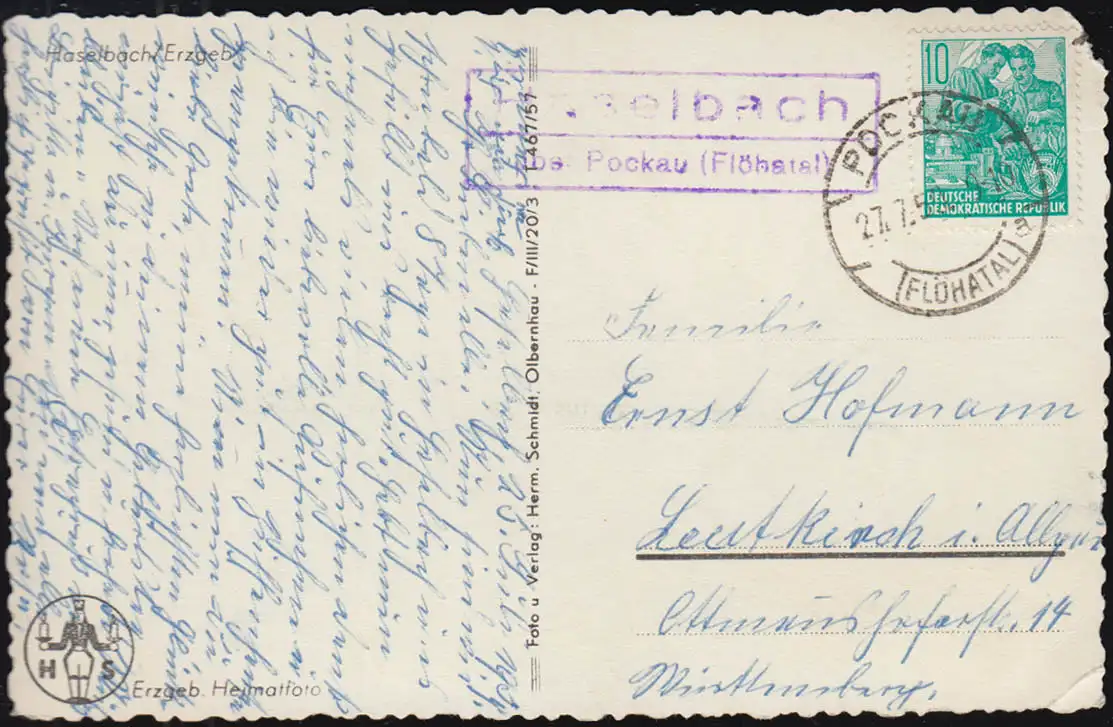 Temple de Landpost Hasselbach sur POCKAU (FLÖHATAL) 27.7.1959 sur AK approprié