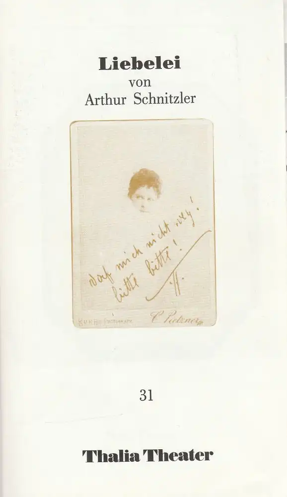 Thalia Theater, Jürgen Flimm, Rolf Paulin, Ludwig von Otting, Horst Laube: Programmheft Arthur Schnitzler LIEBELEI Premiere 23. Juni 1988 Spielzeit 1987 / 88 Heft 31.