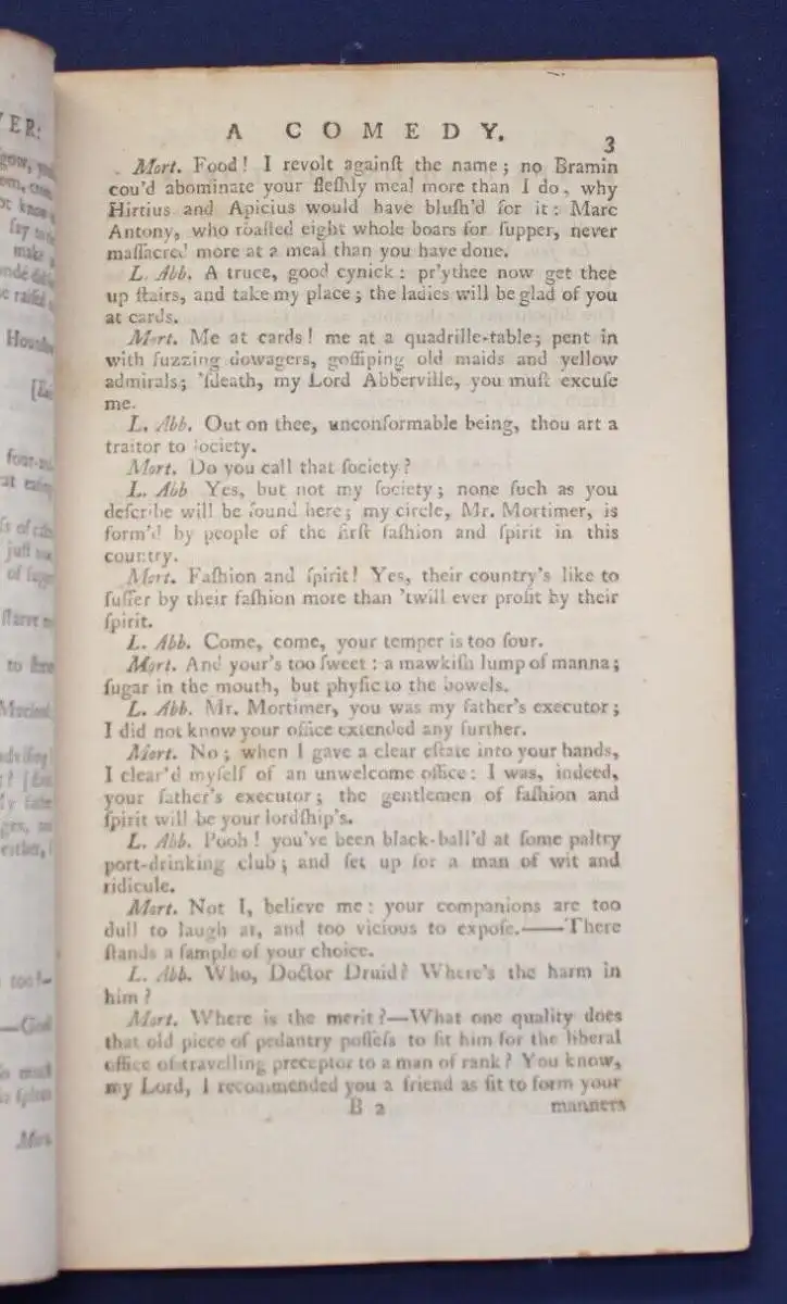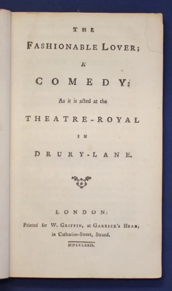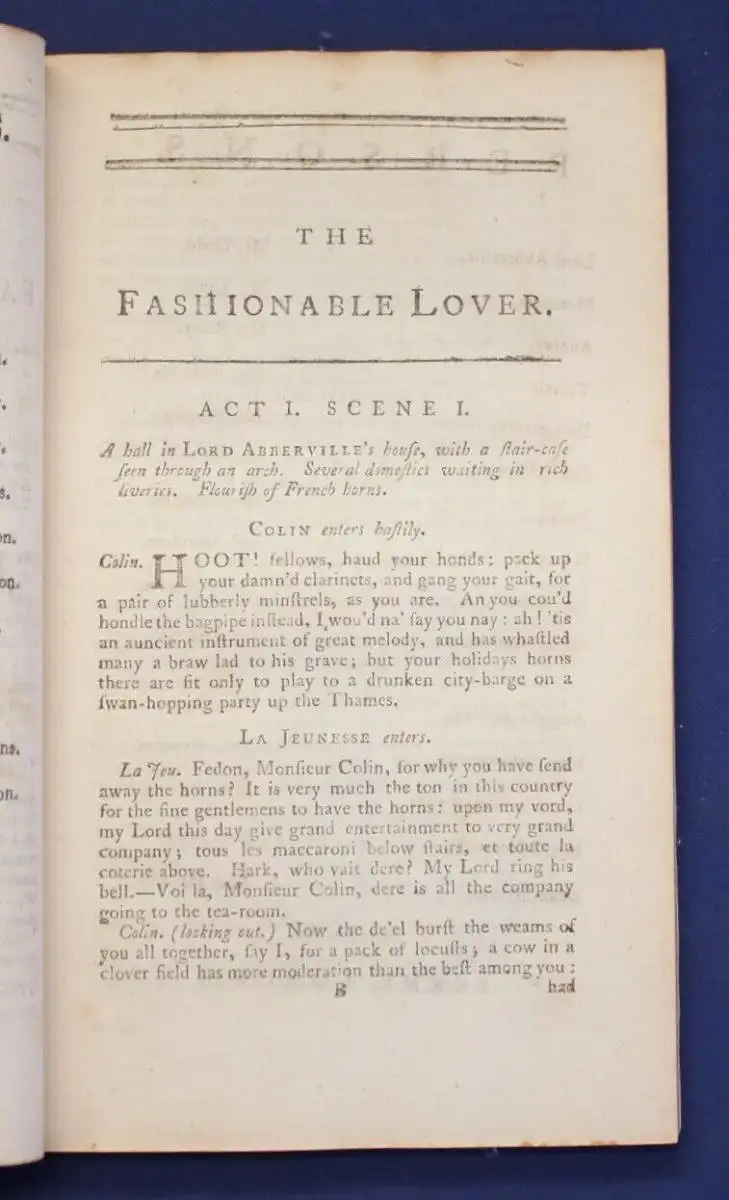 " Der modische Liebhaber " Comedy- Theaterstück erstmals 1772 in London aufgeführt,