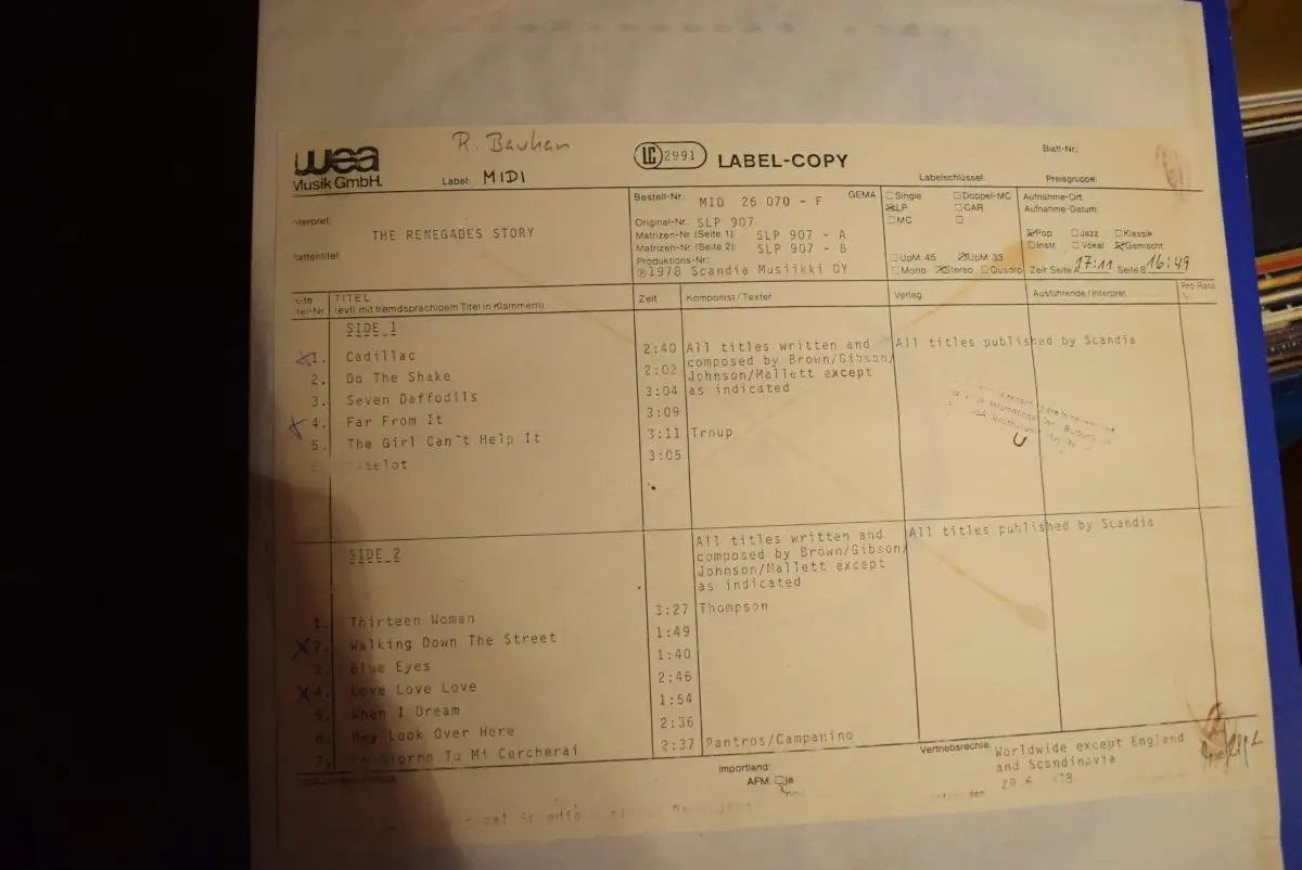 The Renegades ‎– The Renegades Story " Sammlerstück , seltene Promo Version der WEA "