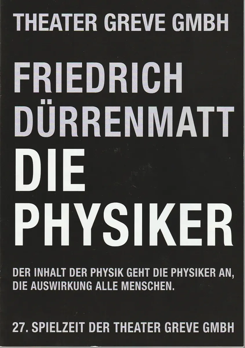 Theater Greve, Manfred Greve, Brigitte Fürböter: Programmheft Friedrich Dürrenmatt DIE PHYSIKER Premiere 23. September 2006 Spielzeit 2006 / 07.