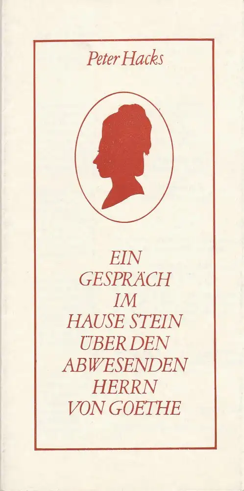Titel: Programmheft Peter Hacks EIN GESPRÄCH IM HAUSE STEIN ÜBER DEN ABWESENDEN HERN VON GOETHE Premiere 6. Januar 1978 Spielzeit 1977 / 78