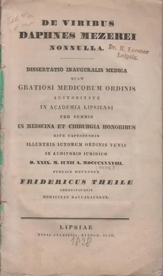 Theile, Fridericus: De viribus Daphnes Mezerei nonnulla. Dissertatio inauguralis medica quam [...] in Academia Lipsiensi [...] publice defendet.