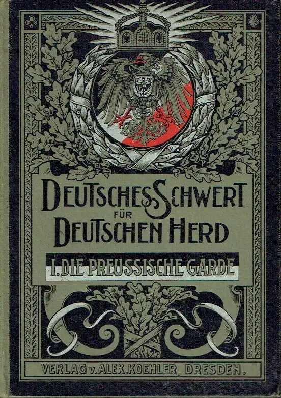 guter Zustand, Gebrauchs- und Alterungsspuren: Einbandecken gering abgenutzt, die unteren leicht gestaucht - Rücken oben mit kleiner privater Nummerierung - private Widmung vom Februar 1905 auf der Vorsatzrückseite und nochmals kleine private Notiz von 1905 auf der Titelrückseite - Seitenschnitt, die ersten 5 Seiten und die letzten 3 Seiten teils etwas stockfleckig - restliche Seiten sauber und ordentlich, zur Datierung: die Widmung stammt vom Februar 1905, im Text ist das jüngste Datum 1897, eine Textpassage lautet "wir haben gegen 30 Jahre Friedenszeit" und das bezieht sich auf den Krieg 1870/71, also wird das Buch zwischen 1898 und Anfang 1905 erschienen sein - Die Anfänge der Garden - Die Garden unter dem großen Kurfürsten und dem ersten Könige - Die »Blauen Kinder« des Soldatenkönigs - Die »Potsdamer Wachtparade« in den beiden schlesischen Kriegen - Die Garde des »alten Fritz« im siebenjährigen Kriege - Der Niedergang - Der Aufschwung des preußischen Gardeadlers - Die Garde unter König Friedrich Wilhelm IV. - Die Garde Wilhelms des Großen im dänischen Kriege 1864 - Die preußische Garde im deutschen Kriege - Die Garde bei der II. Armee 1870 und ihr höchster Ruhmestag - Die Garde bei der Maasarmee vor Sedan und Paris - Die preußisch-deutsche Garde nach dem großen Kriege - Übersicht über das Königlich Preußische Gardekorps in seiner jetzigen Zusammensetzung, Leinen, ca. 14 x 20, 201 Seiten mit 2 chromolithografischen Tafeln
