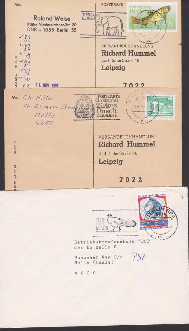Tierpark Berlin Zirkus Busch, drei MWSt. Taube, Elefant, Löwe