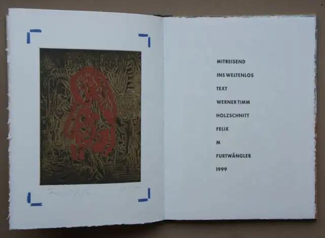 12 non bag. Bl. avec 22 pages pleines de couleur du bâton sur des pieux van-Weltern chez H. Müller à Plauen/Vogtland. Travail de reliure par Hildegard Heckel . Initialement en demi-fille. Format: 39 x 29 cm. Livre numéroté et signé par Felix M. Furtwängler. \'In memoriam Werner Timm\ '': L'historien de l'art était directeur du cabinet de cuivre de Berlin à Berlin-Est. Pour sa demande de pouvoir suivre un appel à la salle d'Art de Hambourg, il a été libéré sans préavis et n'a été autorisé à partir qu'en 1979 dans la BRD. Il était alors directeur de la Galerie d Ouest de Ratisbonne jusqu'à 1992. Ferix Martin Futtwauggler a reçu une lettre inspirée par Timms, qu écrivant des coupes en bois en couleurs typiques et en partie combinées avec des gravures sur bois.