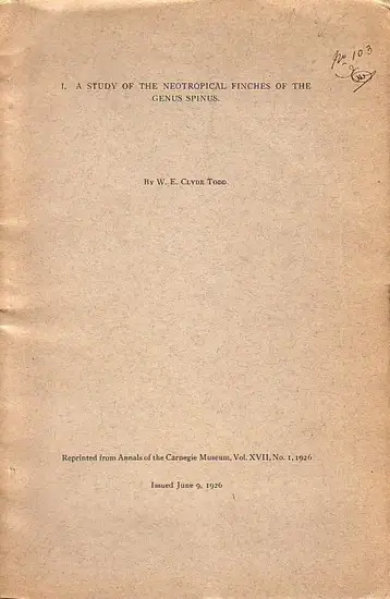 Titel: A study of the neotropical finches of the genus spinus. Reprinted from Annals of the Carnegie Museum, Vol. XVII, No. !, 1926