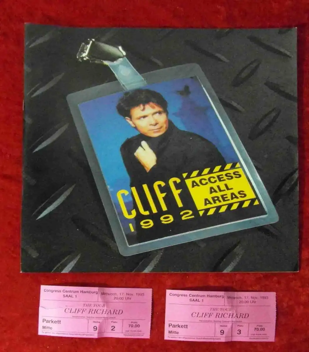 Tourprogramm Cliff Richard 1992 incl. zwei Tickets & Schallfolie Cliff Interview