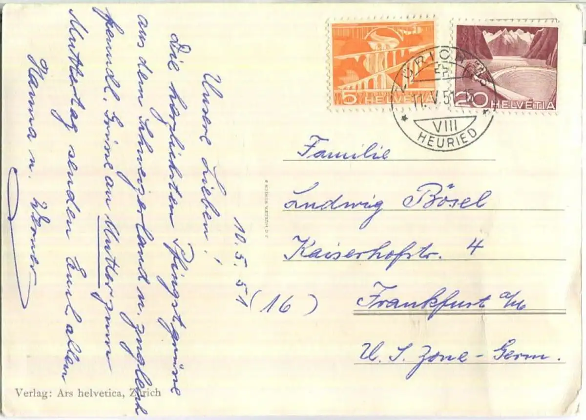Trachtenkarte - Verlag Ars helvetica Zürich - leichte Gebrauchsspuren (E90106) gel. 1951