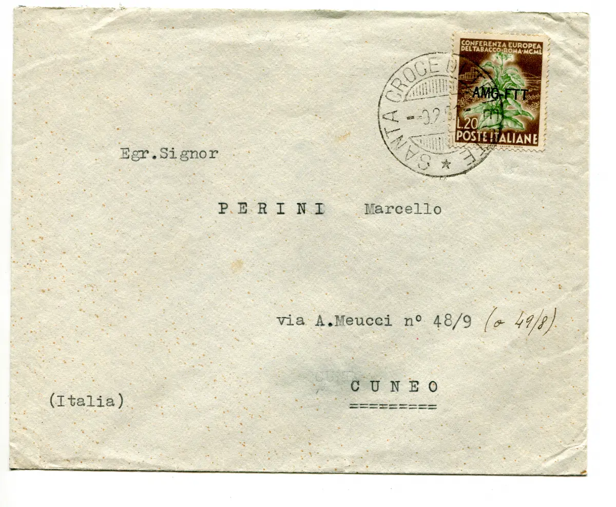 Triest A - Autosalon isoliert auf Umschlag im Tarif Umschlag - Triest A - Tabak Lire 20 Nr. 85 isoliert auf Umschlag für Cuneo - im Tarif Euro60 Cod.1506/WEB