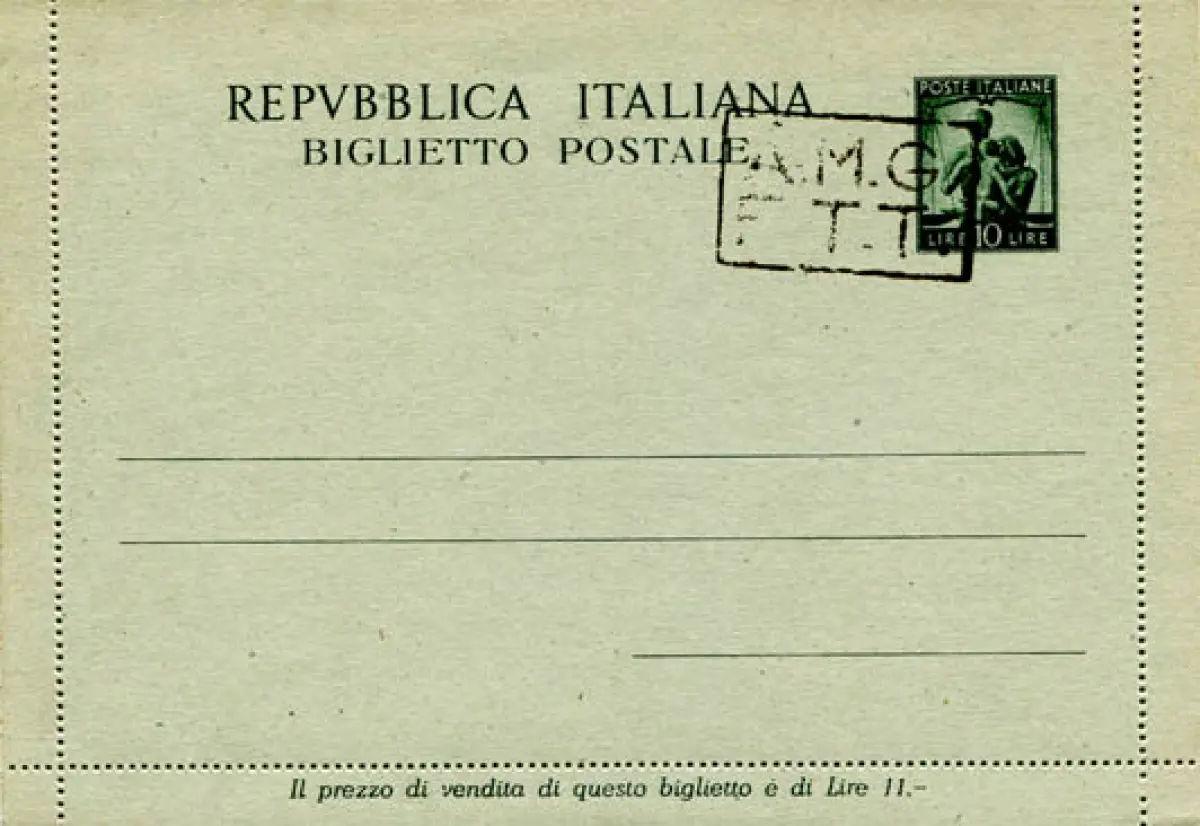 - Triest A - B. P. Lire 10 Democratica n. B 1C Handaufdruck B auf der Briefmarke - postfrisch einwandfrei - Selten - Kat. 200 n. 1102/L
