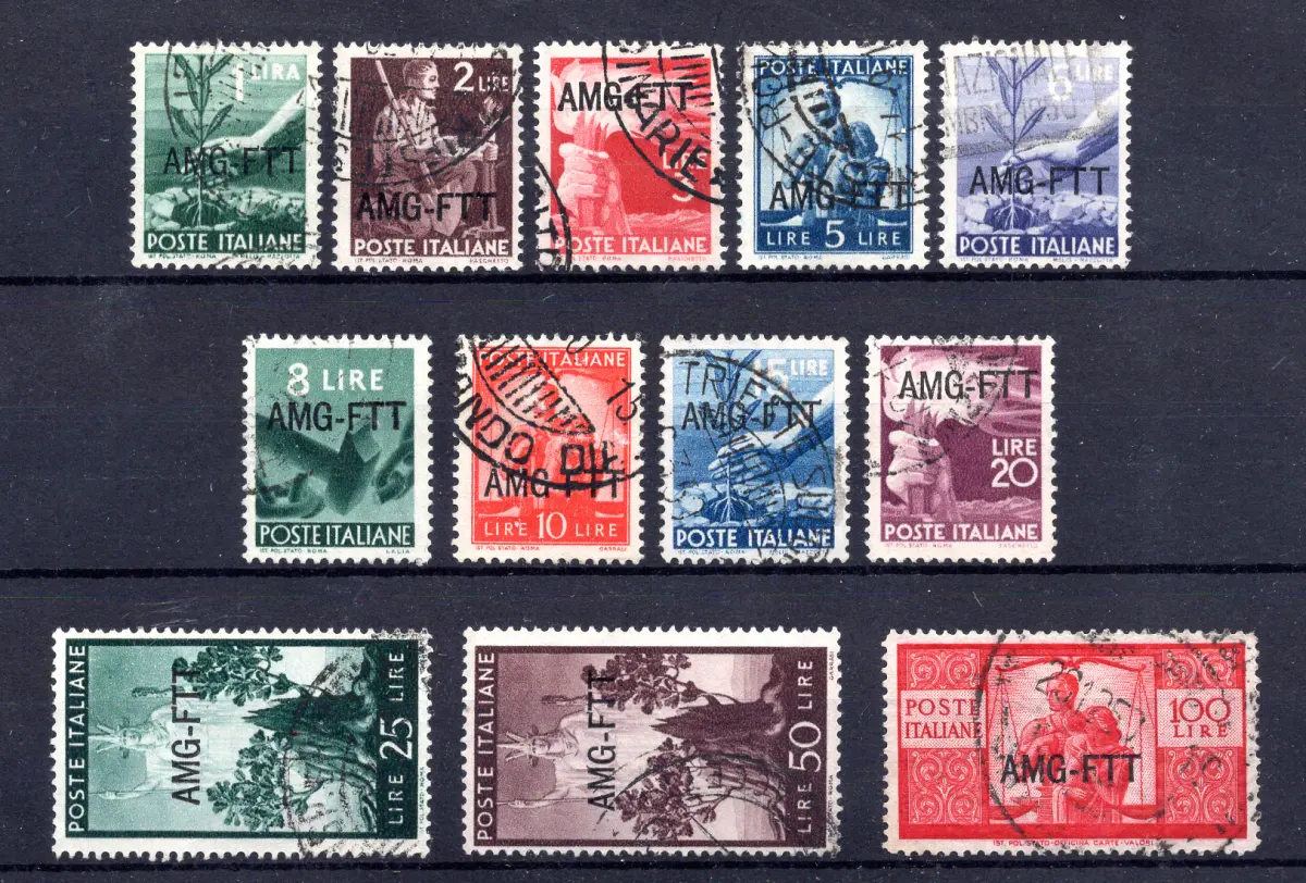 Gebraucht - Triest A - Demokratische Romauflage Nr. 56/67 einzeiliger Aufdruck - komplette Serie von ausgezeichneter Qualität zum Zentrieren und Annullieren Cod. 1735/WEB