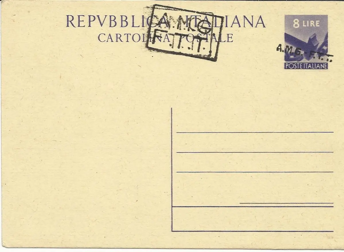 Triest A - Lire 8 Democratica n. C 2A (sopr. A+B) Postkarte - Triest A - C.P. Lire 8 Democratica Nr. C 2A (sopr. A+B) - Neu einwandfrei - Kat. 35 Code Nr. 798/4