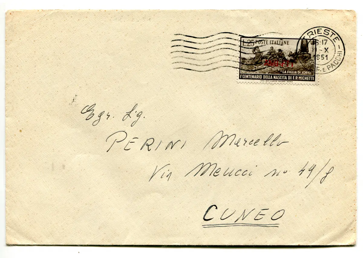 Triest A - Michetti 1951 isoliert auf Umschlag Umschlag - Triest A - Michetti 1951 Nr. 129 isoliert auf Umschlag nach Cuneo gereist - Seltene einmalige Verwendung im Tarif Cod.1472/WEB