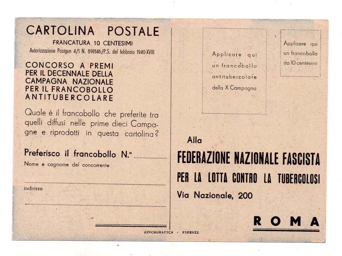 Postkarte - Tuberkulose-Kampagne 1940 - Postkarte Preiswettbewerb zum Jahrzehnt der Tuberkulose-Briefmarken - nicht gereist, einwandfrei Cod. 39/17