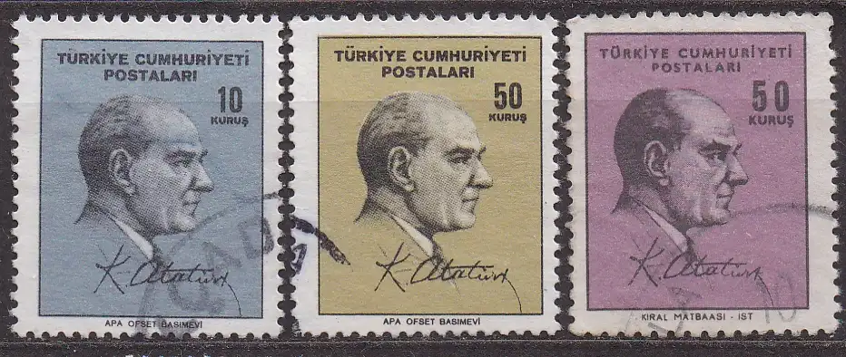 Türkei, Mi-Nr. 1978, 1979 + 2029 gest., Staatspräsident Kemal Atatürk