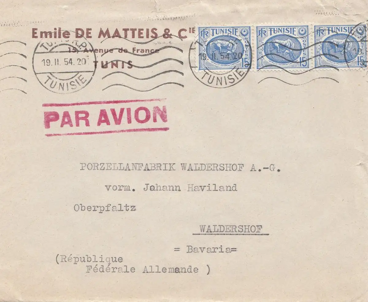 Tunisie: Tunis via airmail to Waldershof- Porcelaine