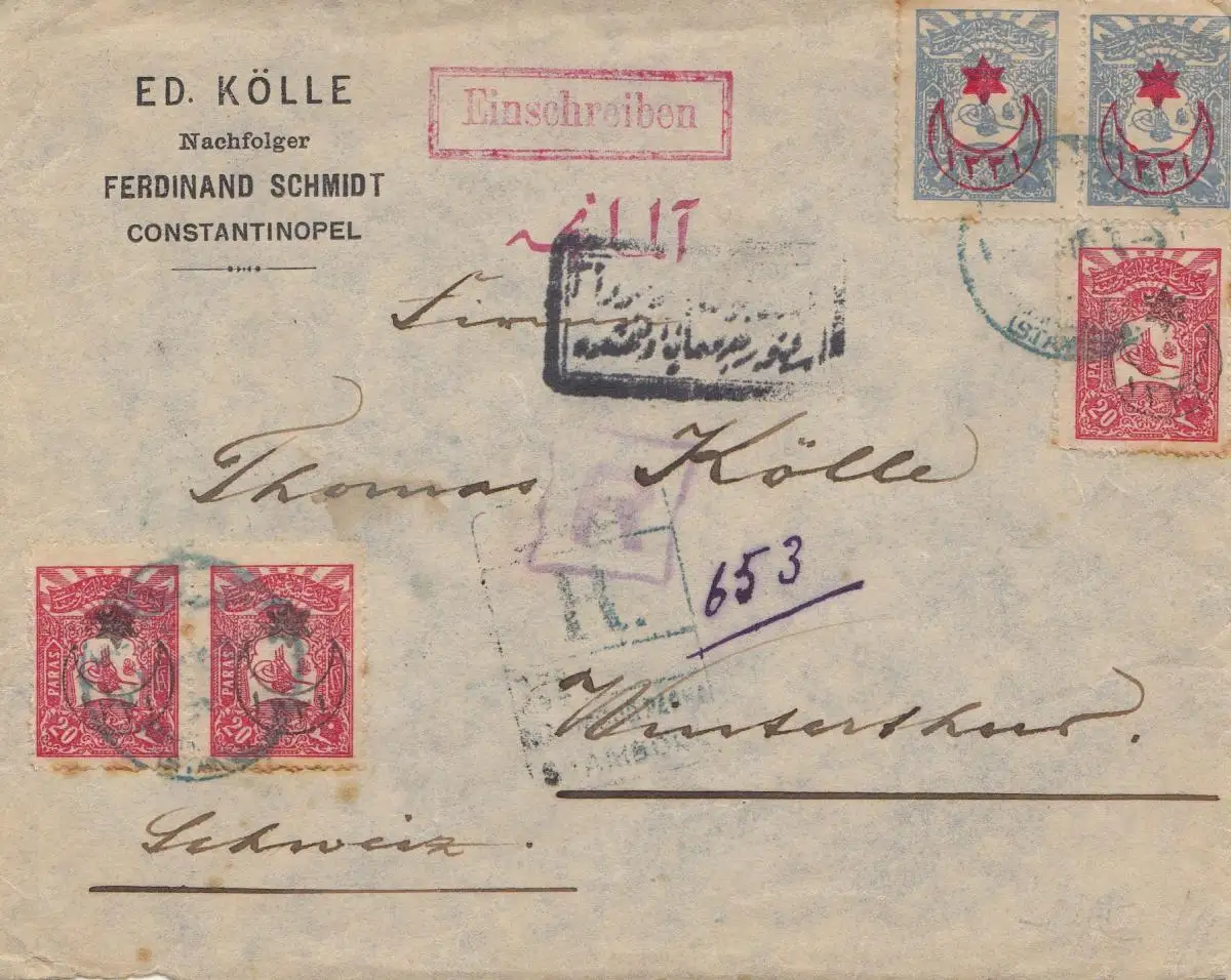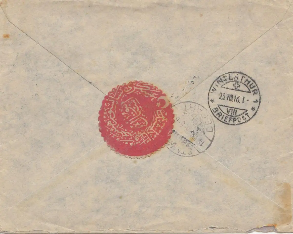 Turquie: 1916: Lettre en monoplace de Constantinople à Winterthur