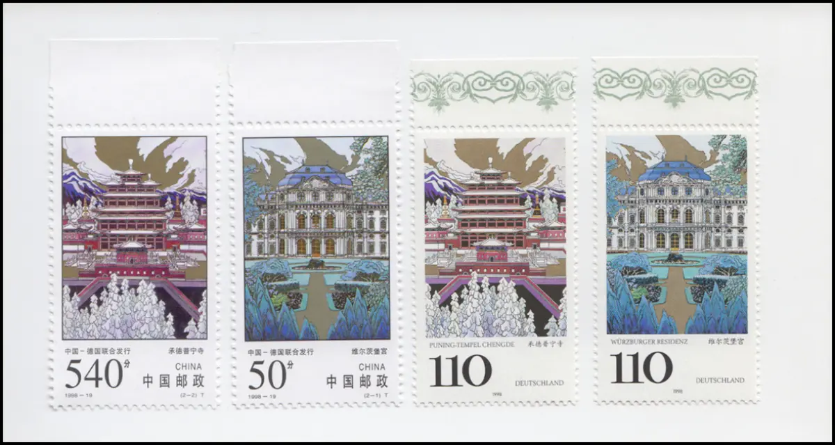 Carnet de marque privé avec les deux éditions de timbres Allemagne 2007-2008 et Chine 2934-2935 (quatre marques au total) de la résidence de Würzburg et du Temple Puning à Chengde. Le cahier a été fabriqué comme indiqué dans une édition limitée de 1000 pièces. Numéro de catalogue: 1998 Examen: original Numéro d'article: 61500199880100>p>Attention: Cet article est ou a plusieurs fois été présenté. L'illustration montre l'un de ces articles. La marque fournie a uniquement les caractéristiques indiquées dans la description et peut donc différer de l ' image. Cependant, en particulier pour les marques marquées, nous nous efforçons de livrer l\'objet représenté. Si cela vous convient, veuillez nous le faire savoir.