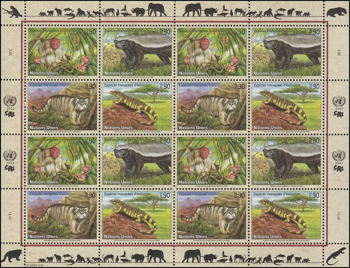 Nations unies Genève 434-437 Espèces menacées X - Faune 2002, Bogen ZD **