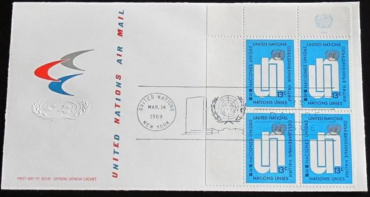 UNO NEW YORK 1969 Mi-Nr. 212 Viererblock FDC