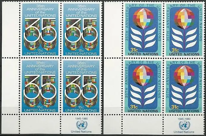 UNO NEW YORK 1980 Mi-Nr. 346/47 Eckrand-Viererblocks ** MNH