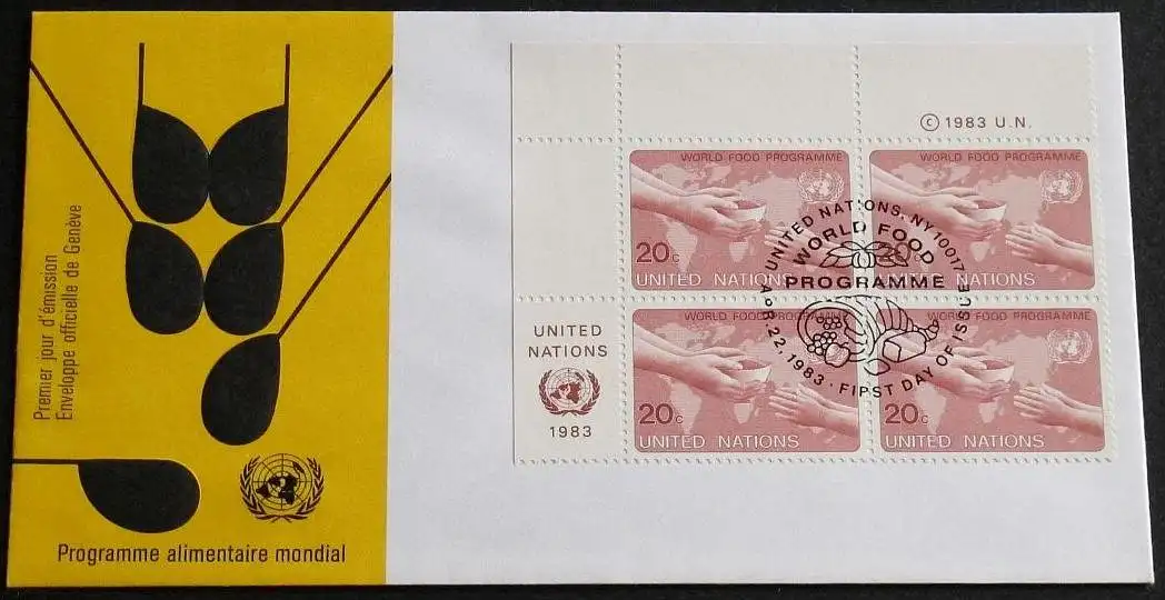 UNO NEW YORK 1983 Mi-Nr. 419 Viererblock FDC